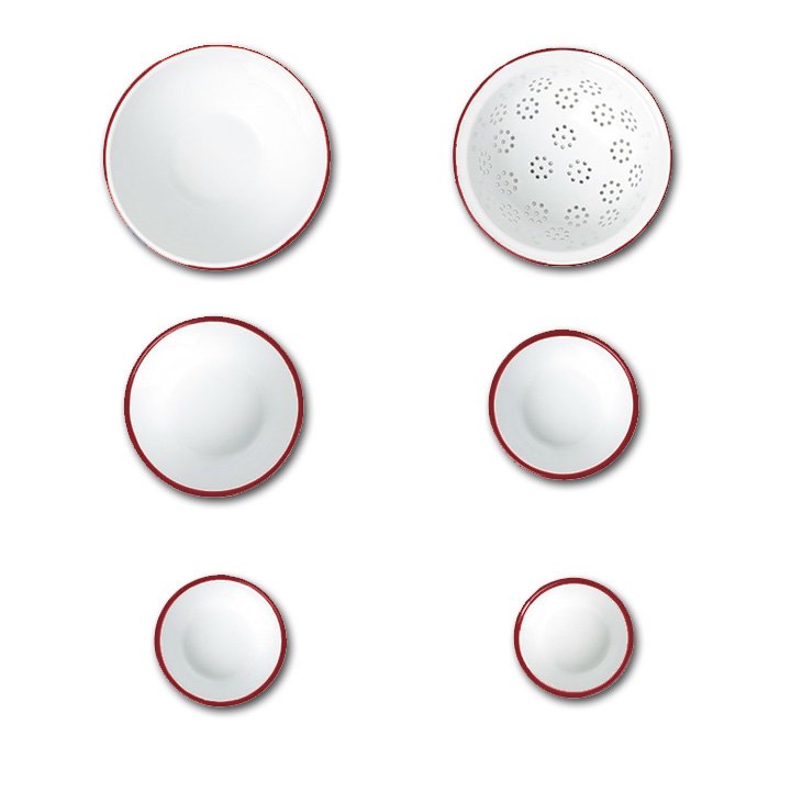 • 5 Rührschüsseln: 1x 12cm, 1x14cm, 1x16cm, 1x 18cm, 1x 24cm + 1 Sieb 24cm