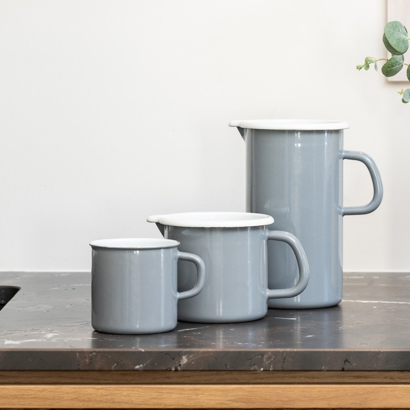 Emaille ist das Beste für gesundes Kochen, Backen und Braten. Es wird aus natürlichen Rohstoffen hergestellt und alle Lebensmittel behalten in dieser grauen Riess Tasse ihren natürlichen, reinen Geschmack.