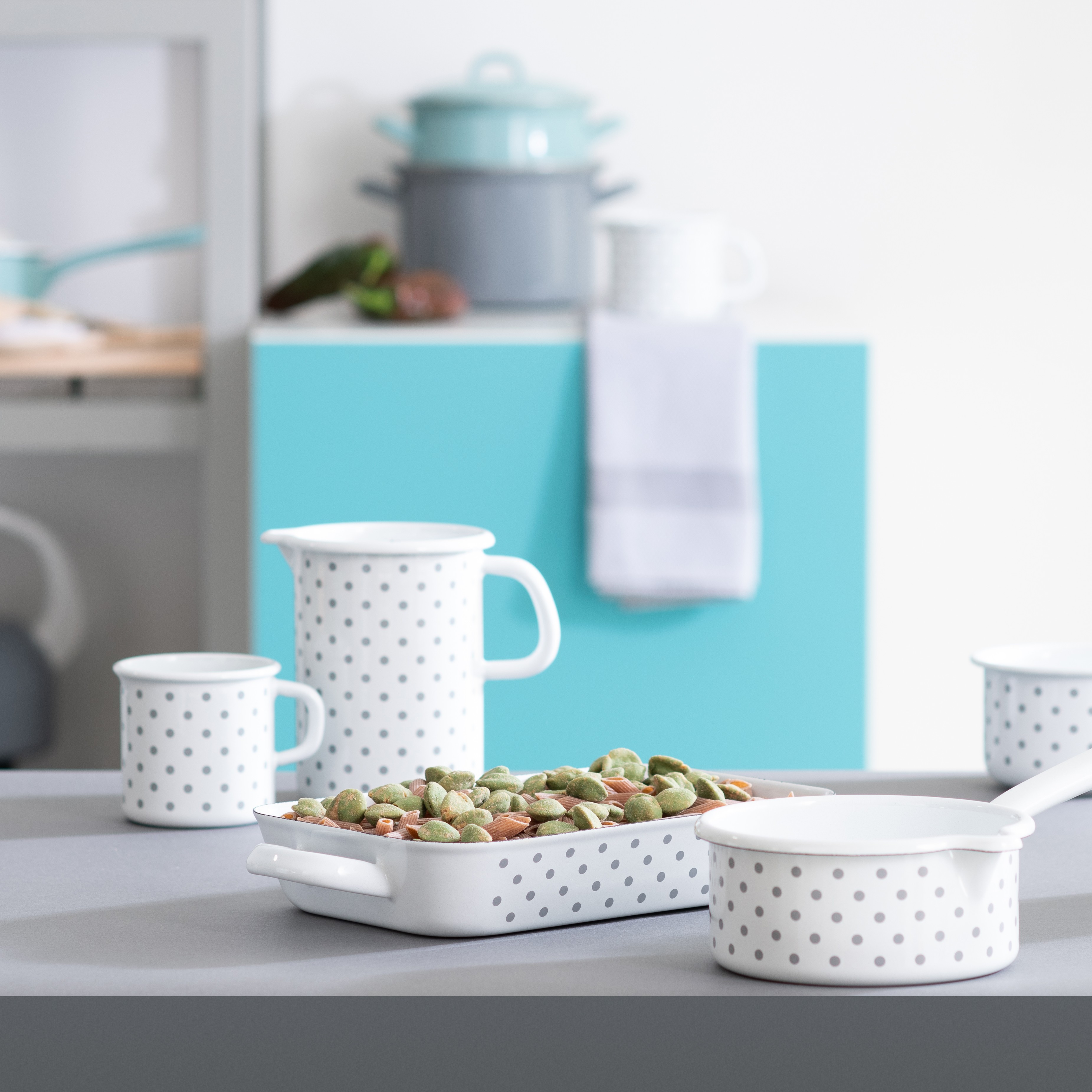 Der Klassiker der 50er Jahre in bester Riess Qualität. Ein feuriges Rot und strahlende Punkte sind mit Sicherheit ein Highlight in jedem Haushalt. Emaille ist das Beste für gesundes Kochen, Backen und Braten. Es wird aus natürlichen Rohstoffen hergestellt und alle Lebensmittel behalten in dieser Riess Tasse ihren natürlichen, reinen Geschmack.