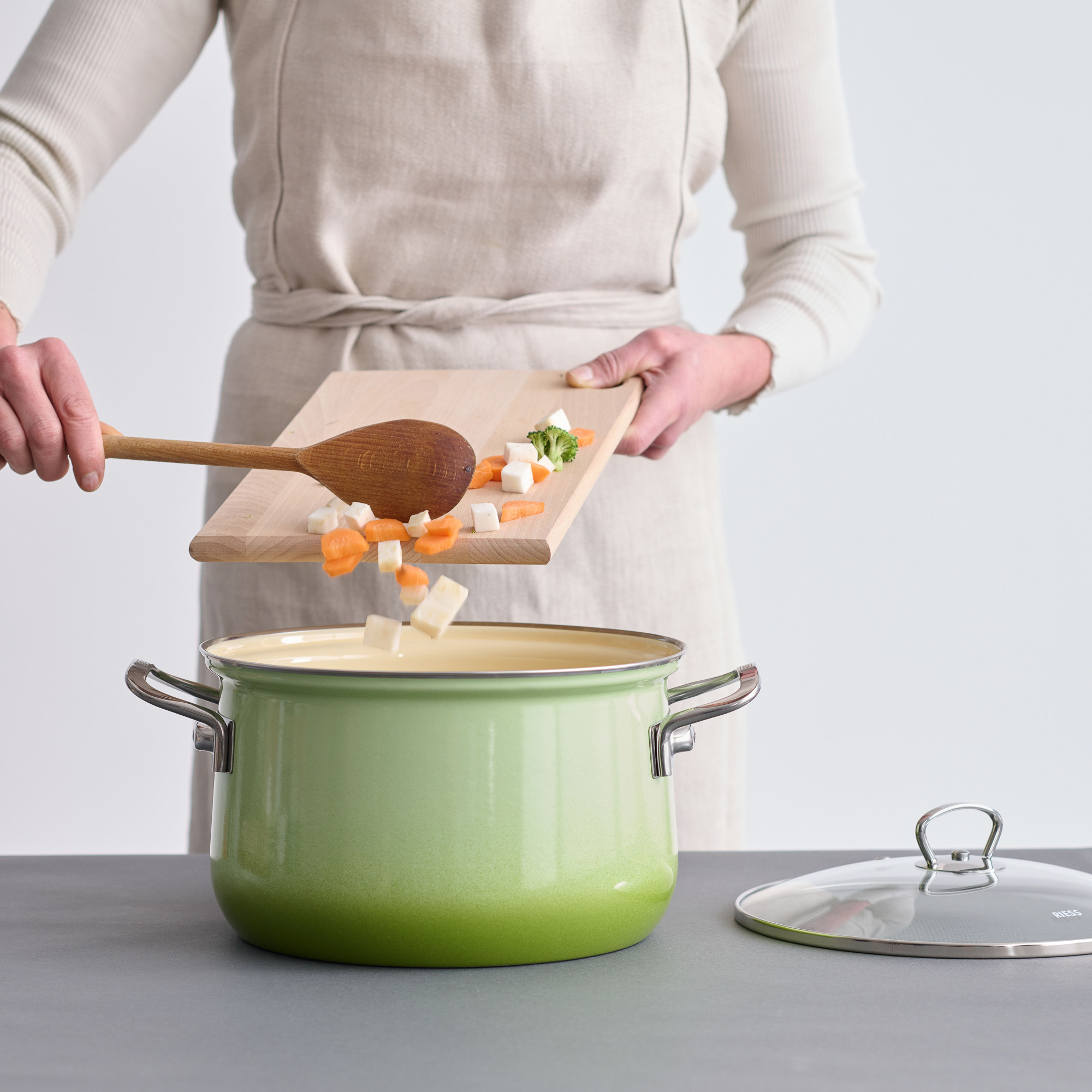 Emaille ist das Beste für gesundes Kochen, Backen und Braten. Es wird aus natürlichen Rohstoffen hergestellt und alle Lebensmittel behalten in diesem Riess Fleischtopf ihren natürlichen, reinen Geschmack.
