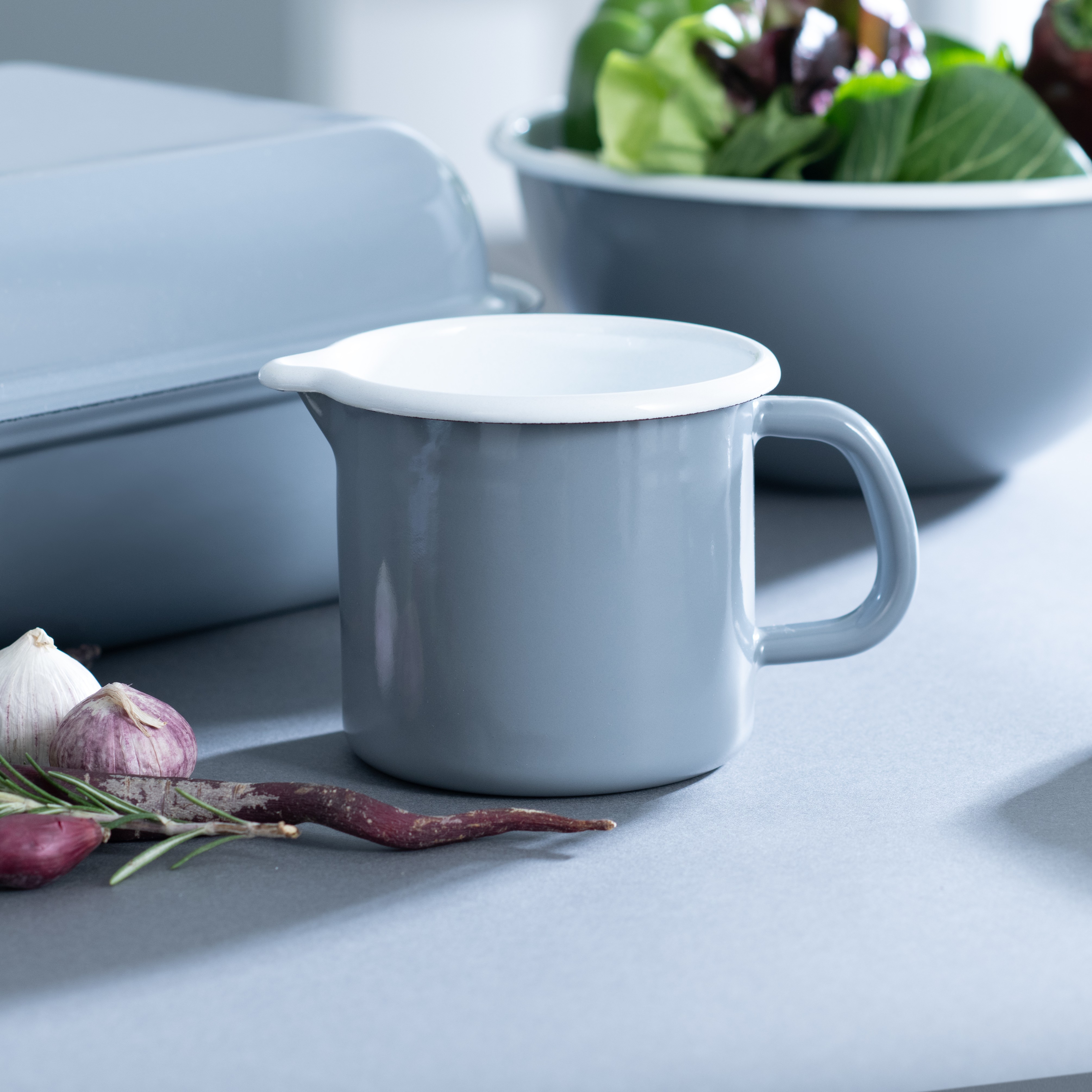 Emaille ist das Beste für gesundes Kochen. Es wird aus natürlichen Rohstoffen hergestellt und alle Lebensmittel behalten in diesem grauen Riess Schnabeltopf ihren natürlichen, reinen Geschmack.